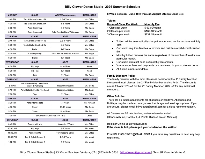 Click Here for 2026 Summer Class Schedule!